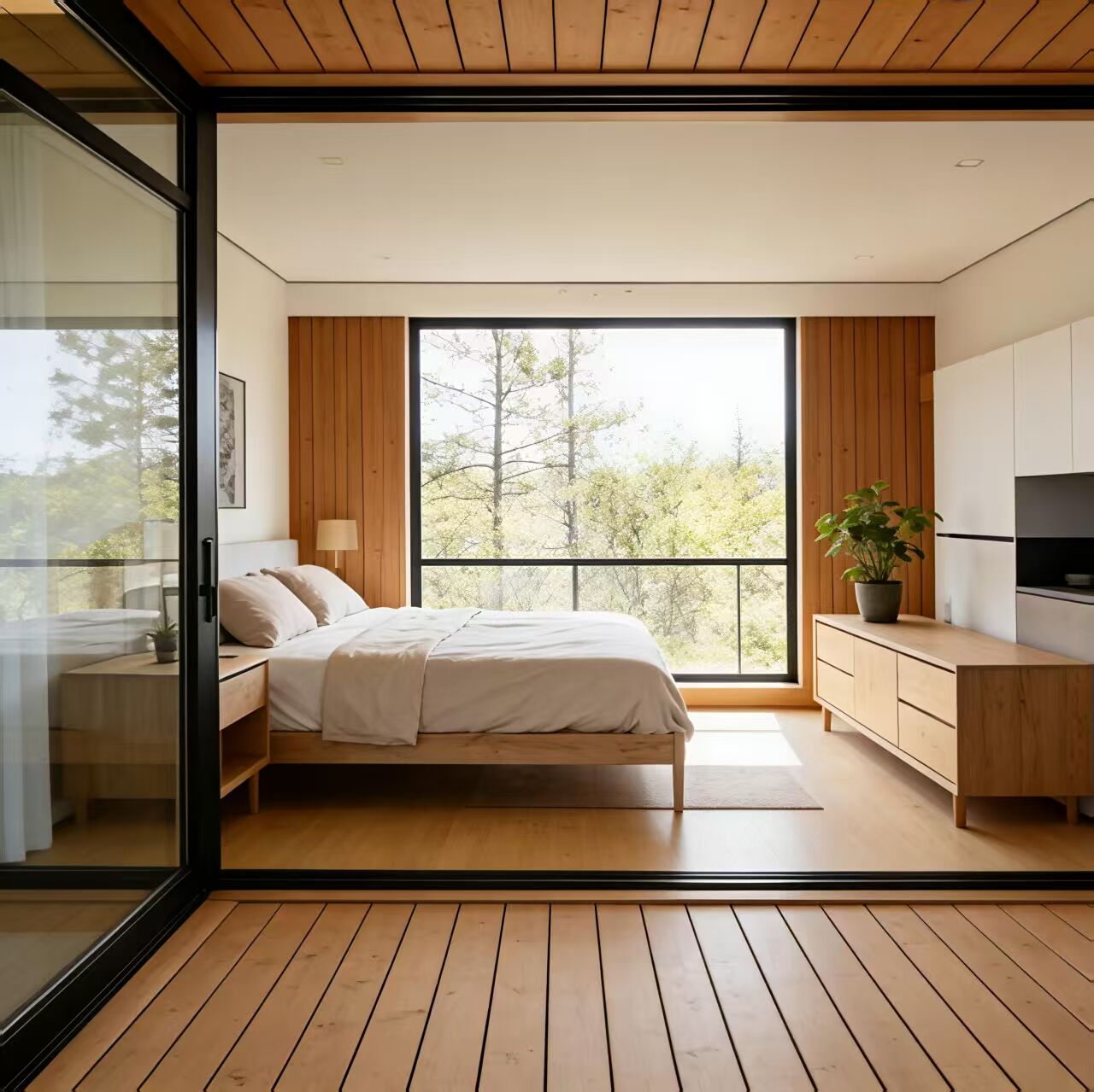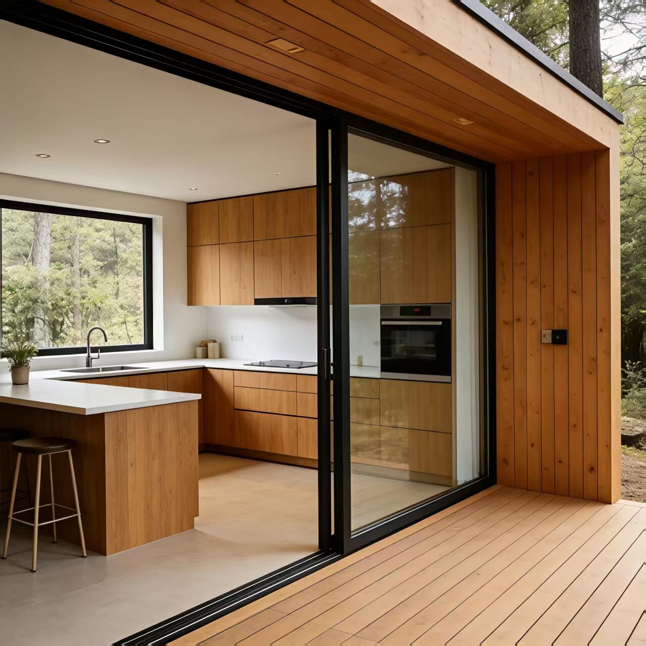 Unlike clunky mobile cabins, this unit pairs sleek wood+glass aesthetics with a pre-furnished all-in-one layout (sleeping, kitchen, dining) — no extra decor needed, and guests pay 15-20% more for the "high-end tiny home vibe."