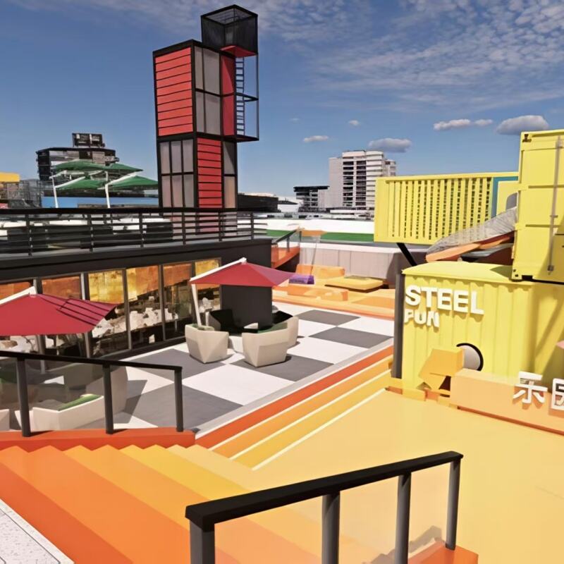 This modular space works for cafes, pizza stalls, retail pop-ups, or activity hubs (e.g., the slide-equipped play area combo). It’s pre-fabricated for quick assembly (cuts on-site construction time by 60%) and can be configured into multi-container layouts (connect units for larger spaces). The compact, portable design also lets you relocate it to high-foot-traffic areas (compatible with standard transport).