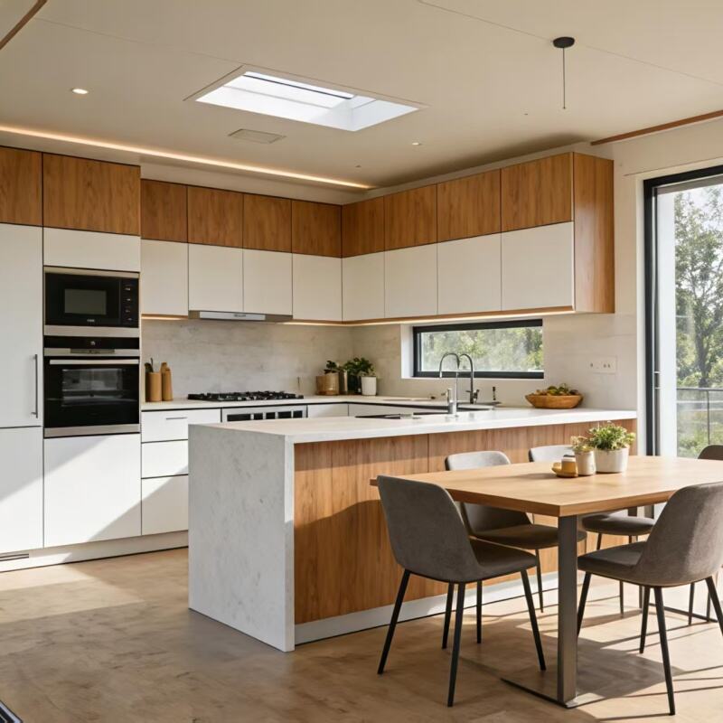 Modern Sustainable Design: Eco-friendly materials, energy-efficient windows, and a weather-resistant exterior.